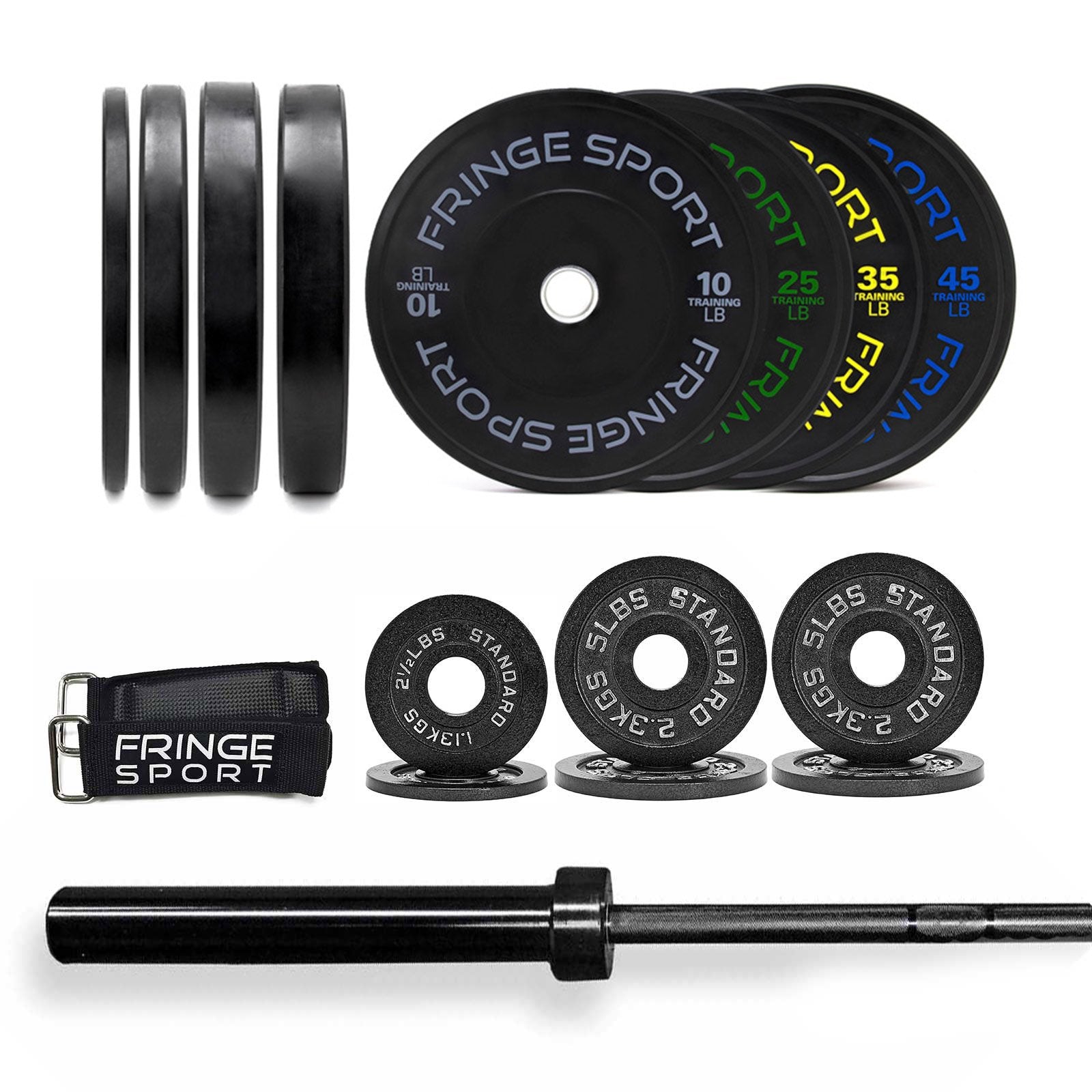 We created amazing bar and weight plate packages to meet the budget and needs of any lifter, no matter what strength level! Choose your bumper style and we've thrown in our best garage gym barbell, small iron weights for incremental weight gains, and a pair of collars.