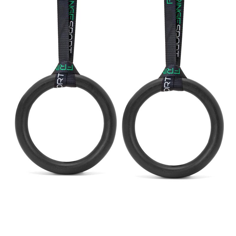FringeSport Gymnastics Rings strike the ideal balance of strength and portability. This package features extremely durable rings that will handle anything you throw at them and we give you the option to get fixed length or adjustable straps along with them. You get that option to use your own rope or straps to hang these rings.
