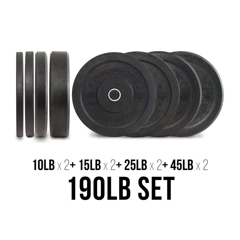 10/15/25/45 - 190lbs: For those that want to make their weight jumps a little smaller and want some additional rubber to add to the bars. The 15s by themselves are still mainly for technique, but their added weight definitely makes them sturdier than the 10 lb bumpers.