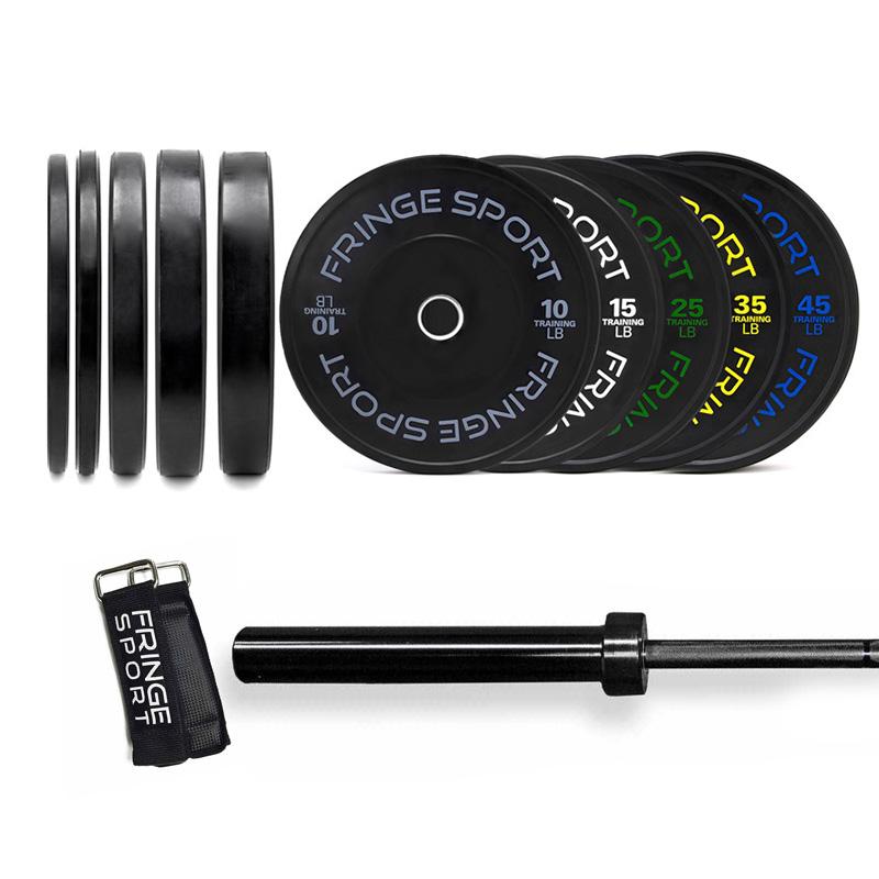 - 10/15/25/45/45/45 - 370lbs: This 370 pound set of Fringe Sport bumper plates ensures that all your bases are covered, for 1 or two people. Whether you are a novice lifter or throwing around some real weight, this set has the weights you need. Need to go heavier? You can either add iron in or contact us for a custom quote on a larger package.