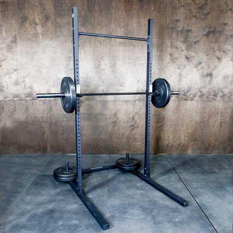 - Our Garage Series: Squat Rack with Pull-up Bar is the best value set up on the market. It's space-efficient 4' x 4' footprint, 450lb weight capacity, adjustable height pullup bar, and can be bolted to the floor for extra stability.