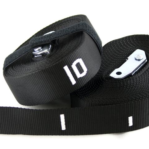 - 30' or 20' of 1.5" polyester webbing + 1 aluminum motorcycle-style cam buckle.