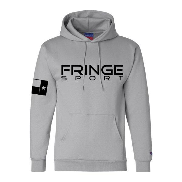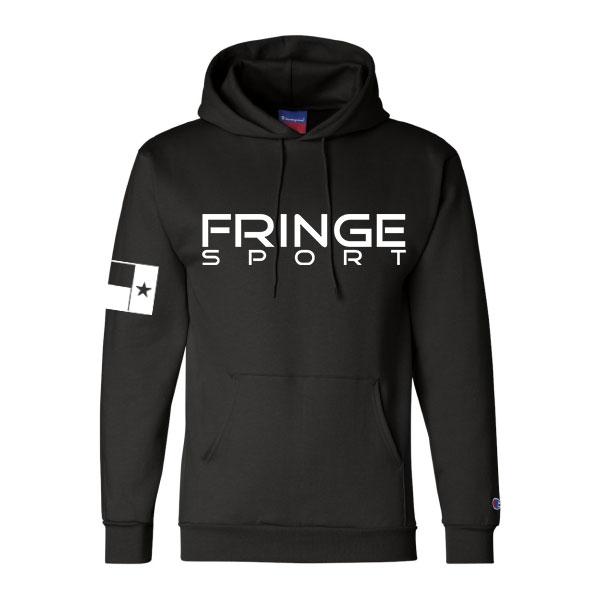 This super warm pullover hoodie has the FringeSport logo printed on the front and our state flag, of Texas, printed on the right arm.