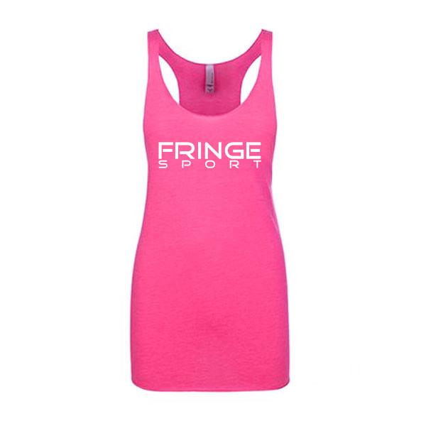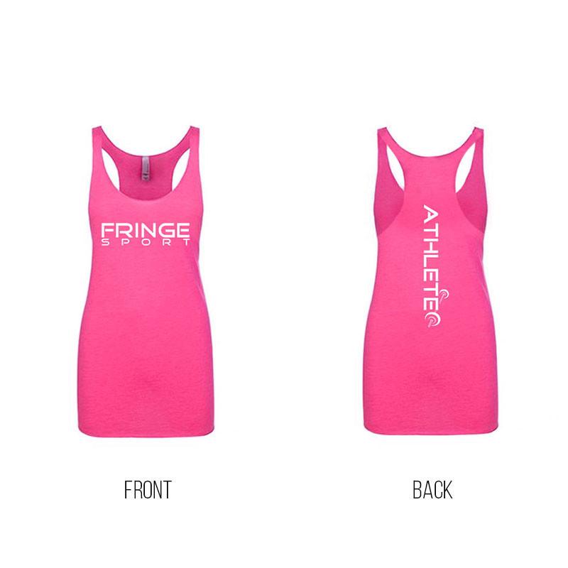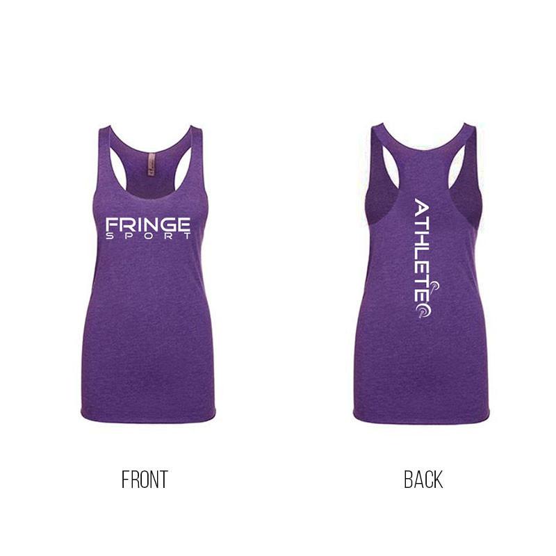 We start with a sexy, form-fitting racerback Next Level Apparel tank made of a soft Tri-Blend (50% poly/ 25% ring-spun cotton/ 25% rayon thread) tank. Then, we hit it with a light silkscreen of the FringeSport logo on the front and "ATHLETE" down the middle of the back.