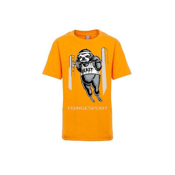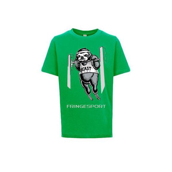 We have this unspoken athlete printed on a pre-shrunk 100% cotton Next Level ApparelåÊcrew kids t-shirt. The sloth is wearing a crop top that reads "Beast Mode". It comes in a yellow gold and a kelly green.