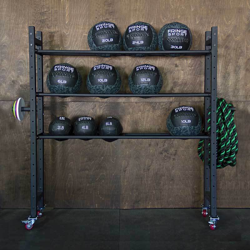 • 3 shelves that you can place in a number of positions to accommodate medicine balls, slam balls, and more.